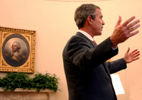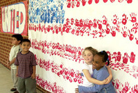 Students at Randolph E.S. celebrate a hand print flag they made following the 9/11 attacks.