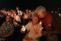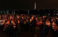 Shanda Schilling, wife of Boston Red Sox pitcher, Curt Schilling, at the Jefferson Memorial, speaks at a candlelight vigil for ALS to....
